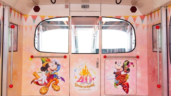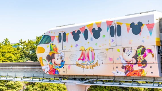 40周年のテーマを象徴するアイテム「ドリームガーランド」や40周年をお祝いする衣装を身にまとったミッキーの仲間たちが描かれた、東京ディズニーリゾート40周年を記念したラッピングモノレール。期間限定のBGMで一層盛り上がりました。