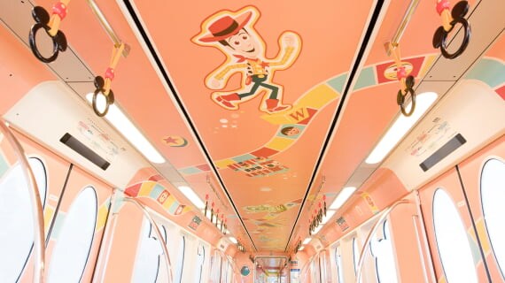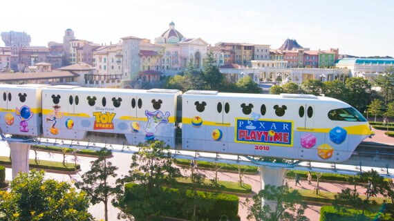 東京ディズニーシーのスペシャルイベント「ピクサー・プレイタイム」をイメージしたカラフルで楽しい「ピクサー・プレイタイム・ライナー」が登場しました。車内には、ピクサーの仲間たちの姿が描かれ、賑やかなリゾートライナーになりました。