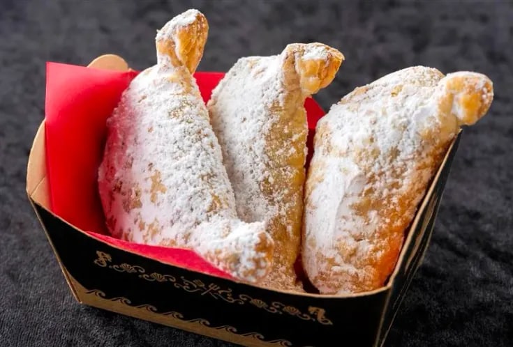 ゴンドリエたちの憩いの場、 「ゴンドリエ・スナック」。 ここでは "キアッケレ" というカーニバルならではのデザートを楽しむことができます。 キアッケレは薄く伸ばしたサクサクの生地に砂糖をまぶしたイタリアの伝統的なお菓子。香ばしさがやみつきになること間違いなし! みなさんもキアッケレを片手に、カーニバルをお楽しみください。
