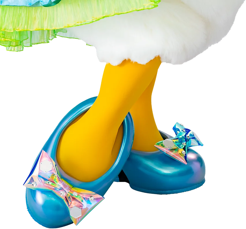 おしゃれなデイジーはパンプスにもこだわりが!特別な色で彩られ、オーロラのような光を放つ透明感のあるリボンがポイントです。