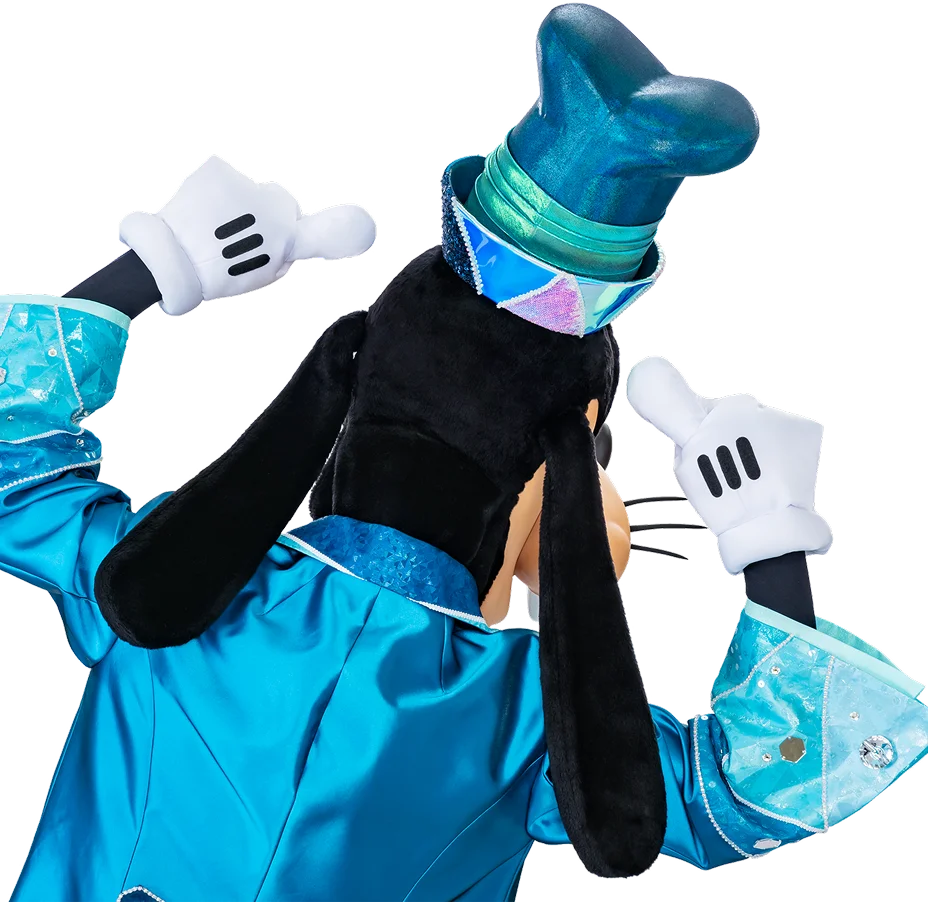 グーフィーのおなじみの帽子も鮮やかなジュビリーブルーのきらめきを放ちます。