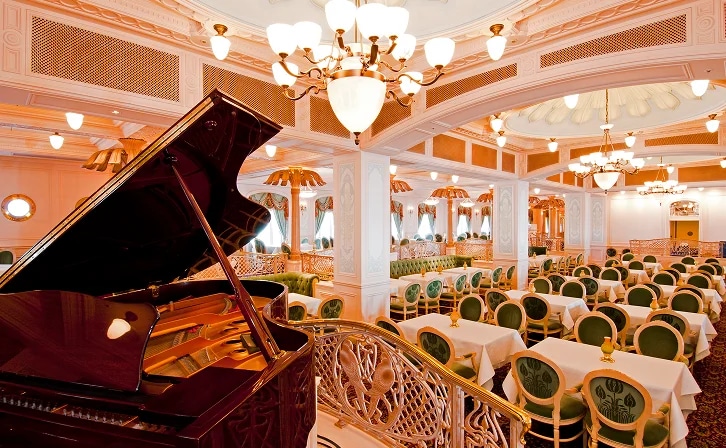 豪華客船S.S.コロンビア号内のレストラン「S.S.コロンビア・ダイニングルーム」にてスペシャルメニューをお楽しみください。