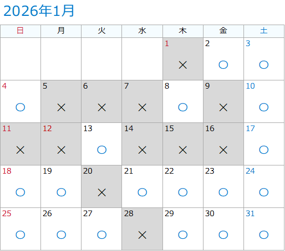 以下、空き状況は2025年11月18日17:00時点の状況です。実際の空き状況と異なる場合がございます。また、売り切れとなった日程が予告なく再販となる場合がございます。あらかじめご了承ください。