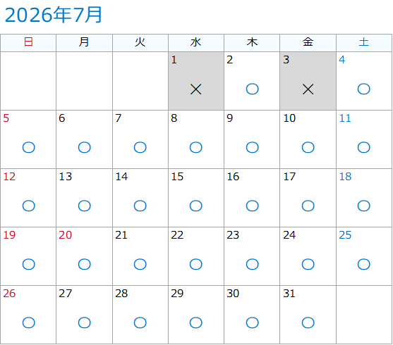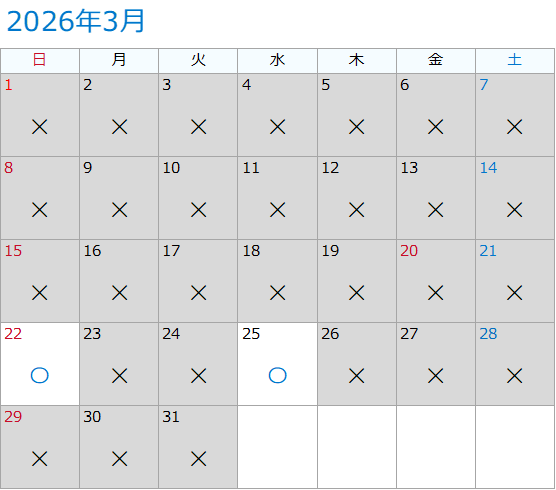 以下、空き状況は2026年3月10日17:00時点の状況です。実際の空き状況と異なる場合がございます。また、売り切れとなった日程が予告なく再販となる場合がございます。あらかじめご了承ください。