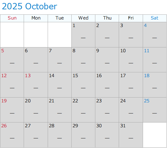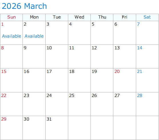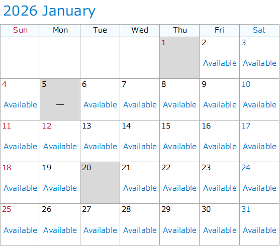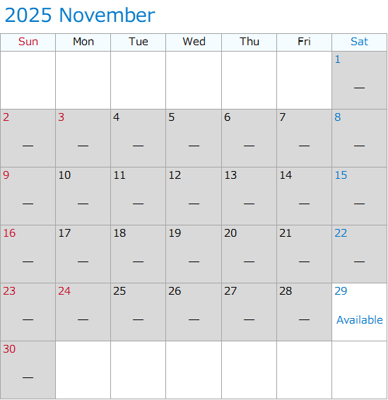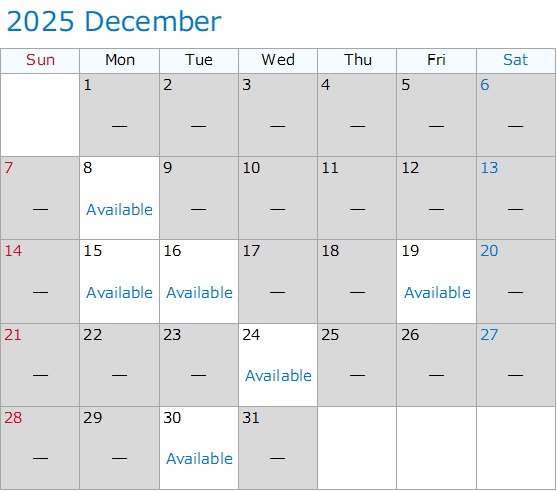 The information below is the availability as of 5:00 p.m, October 1, 2025.The information below may not represent the actual status of availability. The date which became unavailable may become available again without notice.