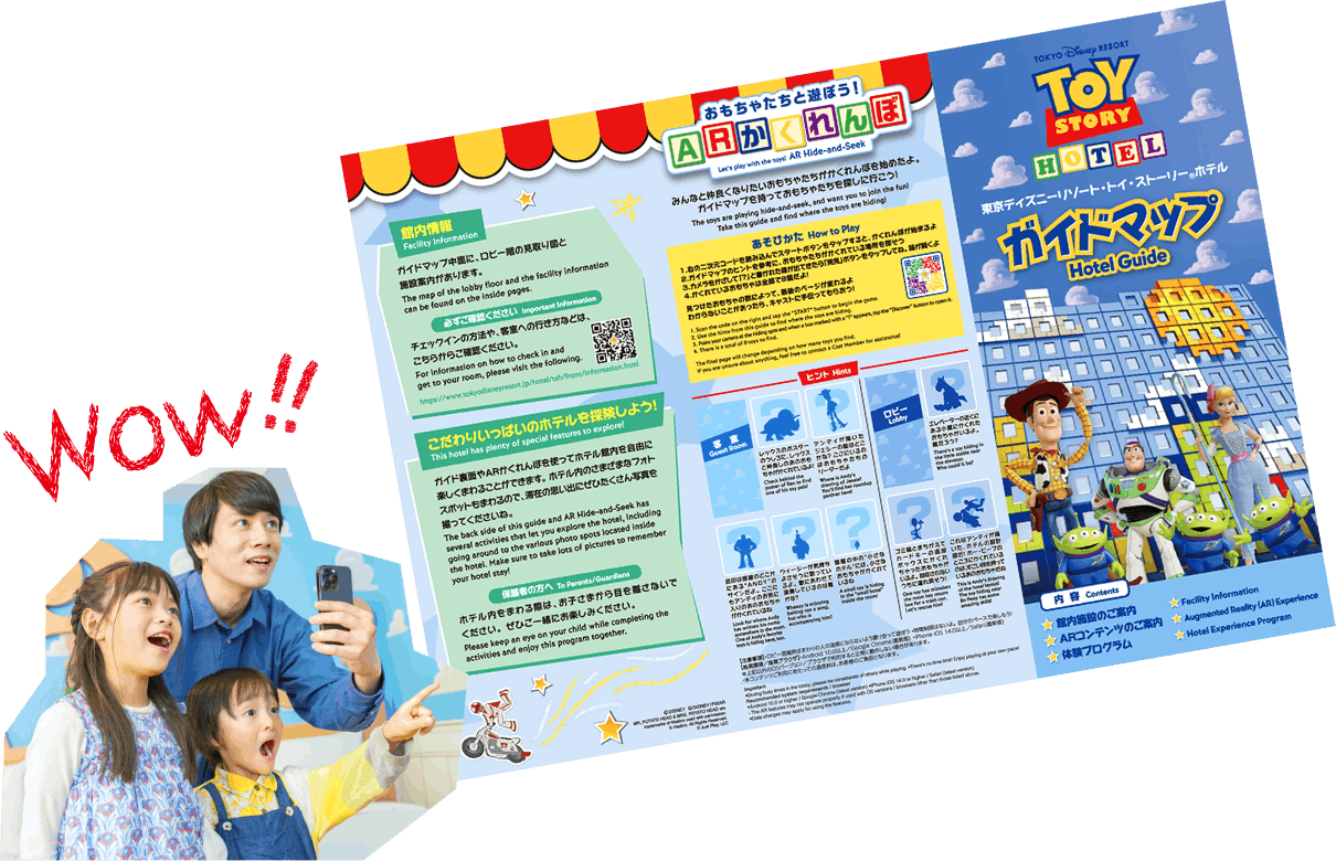 ホテルキャストに声をかけて「トイフレンズスタンプラリーatトイ・ストーリーホテル」体験用のリーフレットをもらおう!