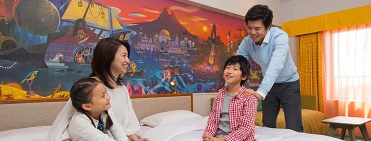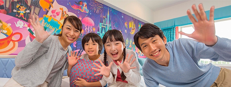 ホテルとパーク間のご移動は、ご宿泊ゲスト専用の便利な無料シャトルバスで約20分!お子さま連れやお友だち同士での滞在にぴったりなホテルです!