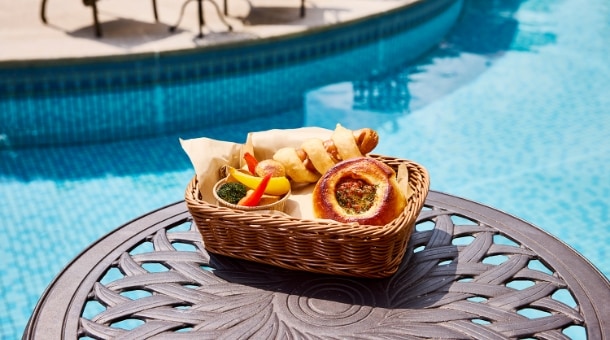 プールでクールダウン!夏の日差しの下で、気軽に涼しいひとときを。ホテルなら準備も心配なく家族で楽しめる!