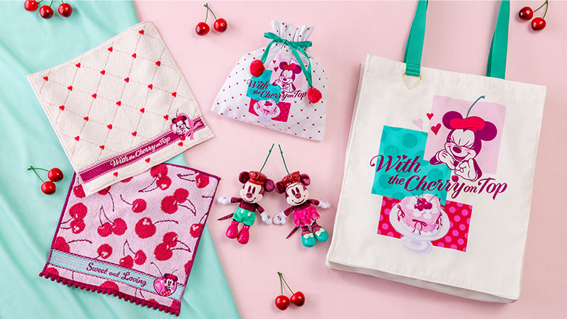 ケーキにさくらんぼを飾るミニーマウスがデザインされた大人かわいいグッズ