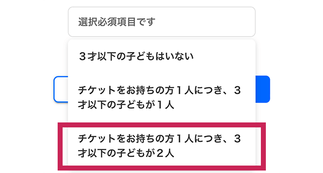 「チケットをお持ちの方1人につき、3才以下の子どもが1人」を選択- (例2)