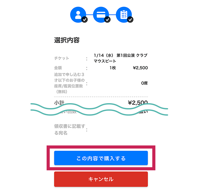 - 購入のキャンセルは、「購入状況確認はこちら」ボタン先の購入サイトにある「マイチケット」または購入完了メールに記載のURLから行ってください。お問い合わせによるキャンセルはお受けできません。