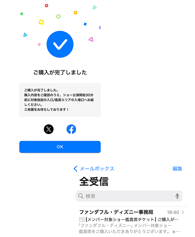 購入完了メールが届きます。メールに二次元コードは掲載されません。