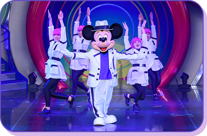 - 対象の公演の公演時間は対象日の前月8日ごろに更新される東京ディズニーリゾート・オフィシャルウェブサイト内該当ショーの月間スケジュールをご確認ください。