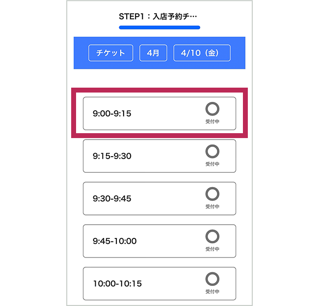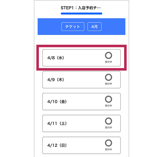 例1 4月9日の入店予約チケットと