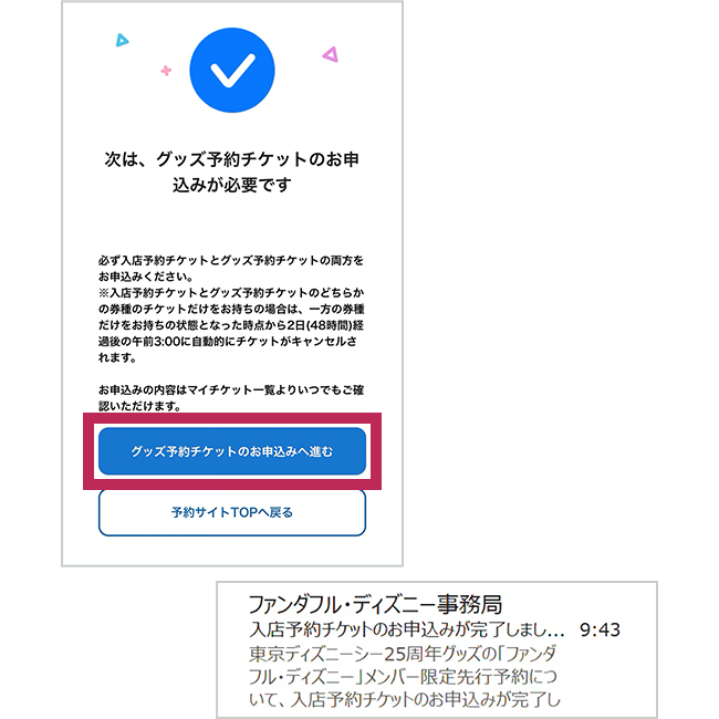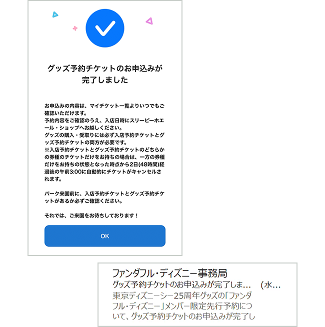 - 入店予約チケットとグッズ予約チケットをお持ちであっても、入店当日の東京ディズニーシーへの入園を保証するものではありません。