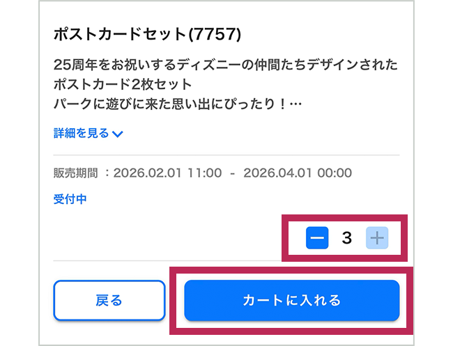 - 対象店舗での受付時に、入店予約チケットを確認いたします。また、ファンダフル・ディズニーメンバーズカードを確認させていただきますので、必ずご持参ください。お忘れの方はご購入できない場合がございますのでご注意ください。