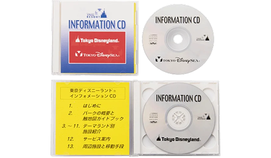 東京ディズニーランドの各テーマランドや東京ディズニーシーの各テーマポートの紹介、アトラクション、レストラン、ショップなどについてのご案内を収録したCDです。