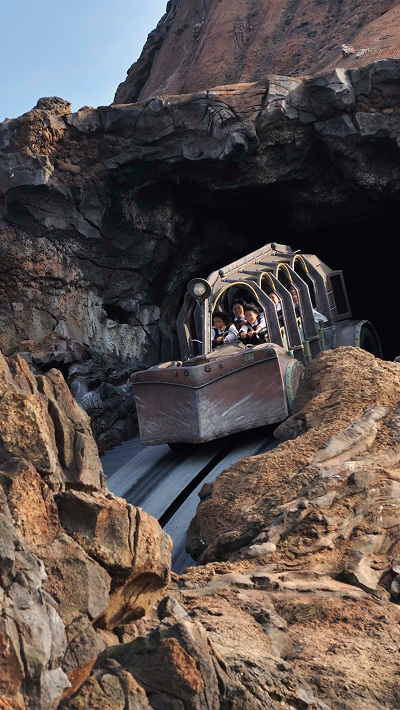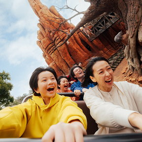 ビッグサンダー・マウンテンはスリル満点!みんな大満足と思いきや、子どもたちから「もう一回乗りたい!」のリクエスト。スリルライドがちょっと苦手だったはずのパパも、ノリノリで2回目へ!子どもたちと一緒に大はしゃぎ!