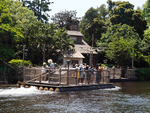 長男が近寄ってみると、トムソーヤ島のいかだを発見!今日はたっぷり時間があるので、トムソーヤ島で冒険だ!